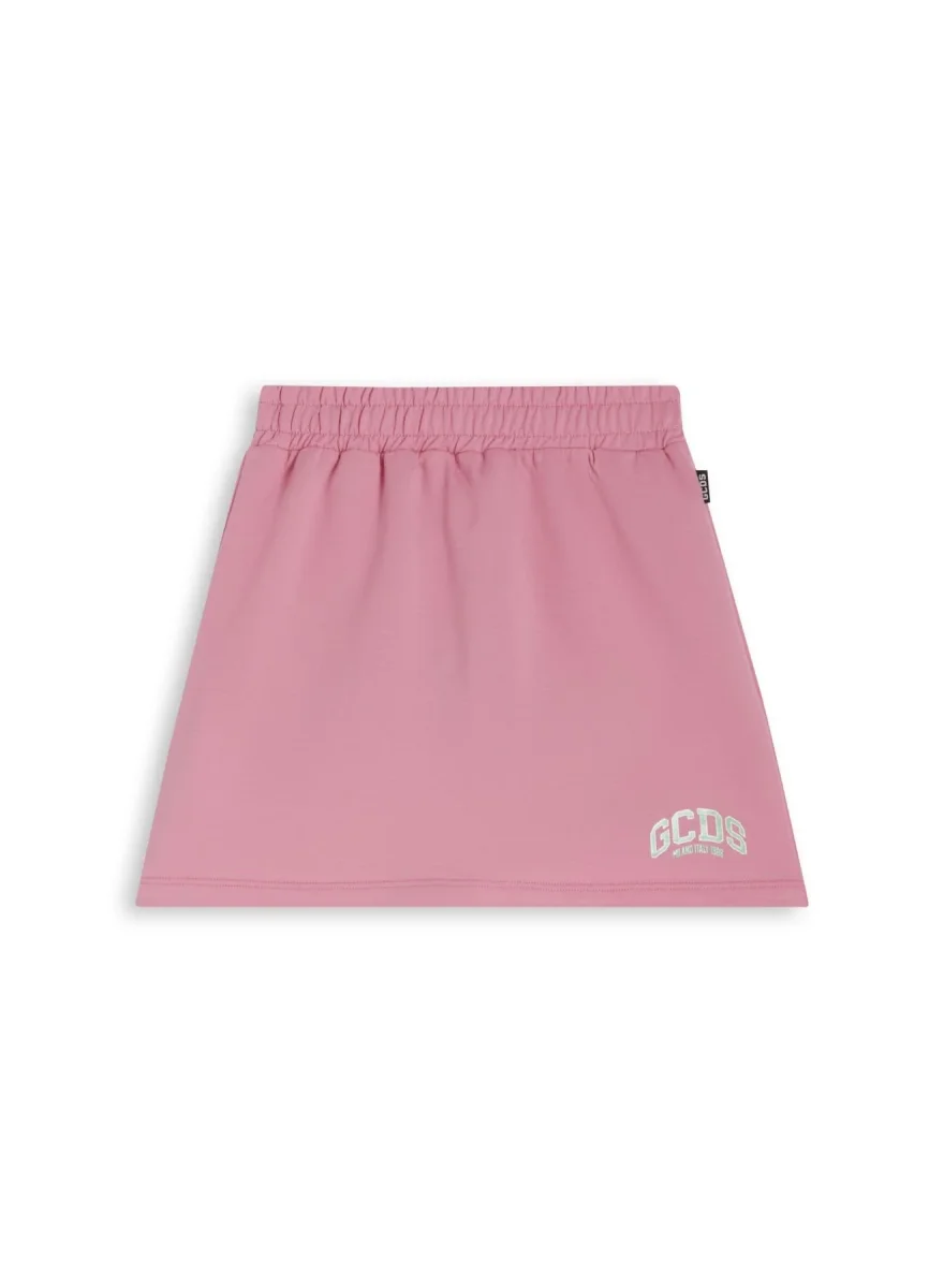 Gonna elasticizzata GCDS, modello in vita elasticizzato e logo al fondo in contrasto, colore rosa