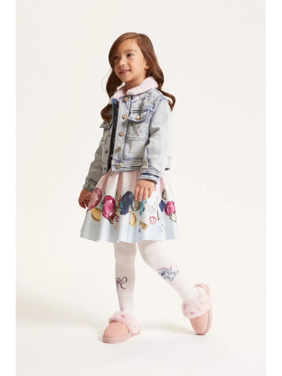 Gonna Monnalisa con stampa gioiello in contrasto all over, vita elasticizzata con banda logata