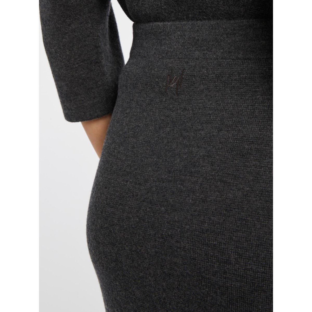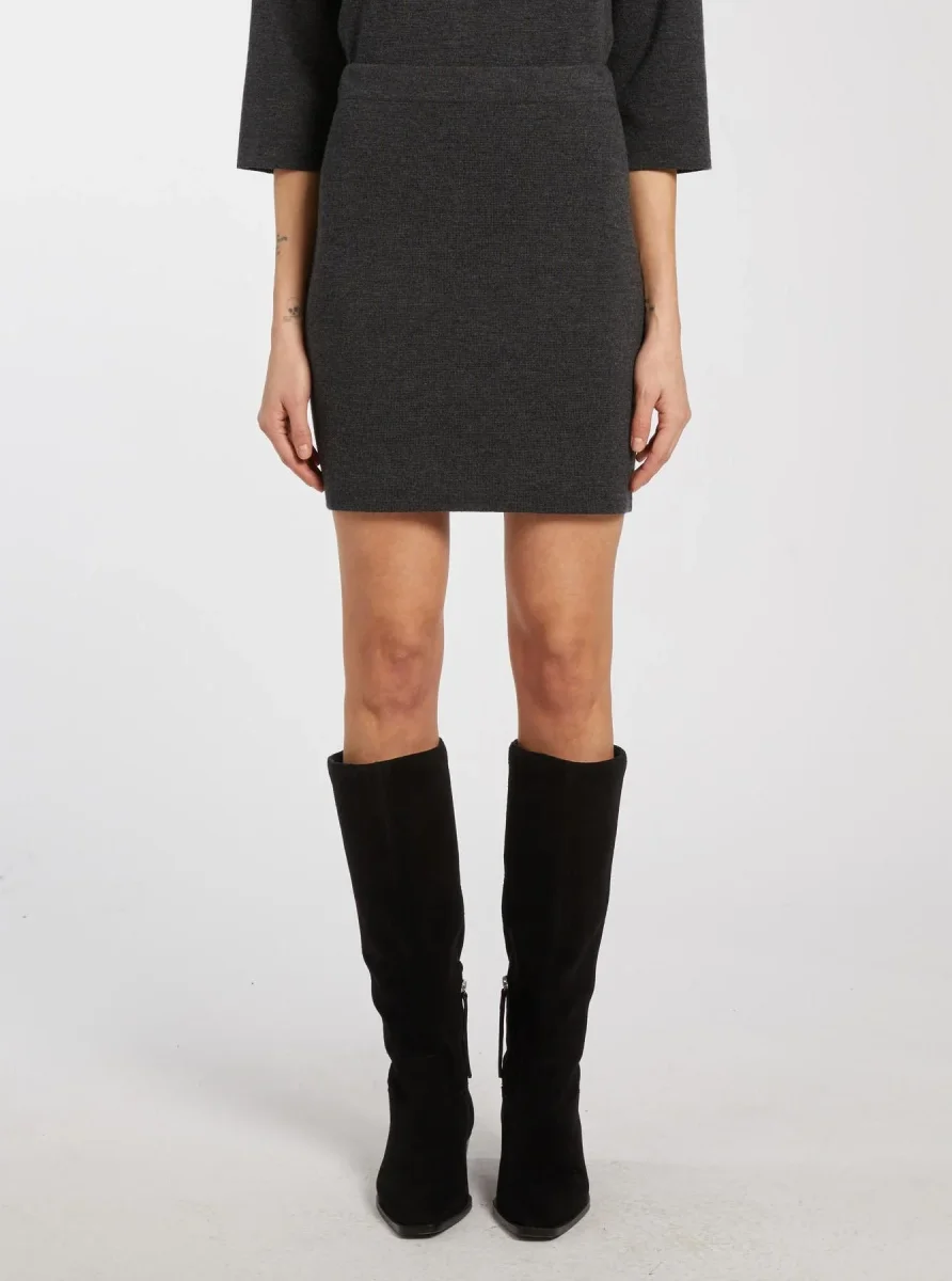 Gonna in lana merinos extra fine, lavorata in punto stoffa, con inserto elastico in vita, colore grigio