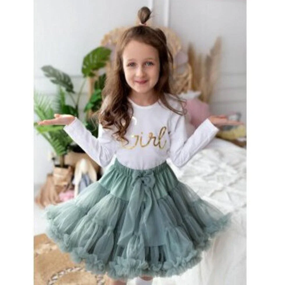 Gonna in tulle dusty mint bimba, modello in tulle e fiocco in vita elasticizzata, colore menta