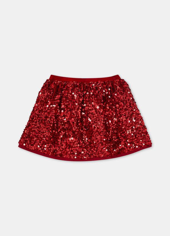 Gonna full pailettes, cintone elastico in vita, logo in metallo sul fondo, colore rosso