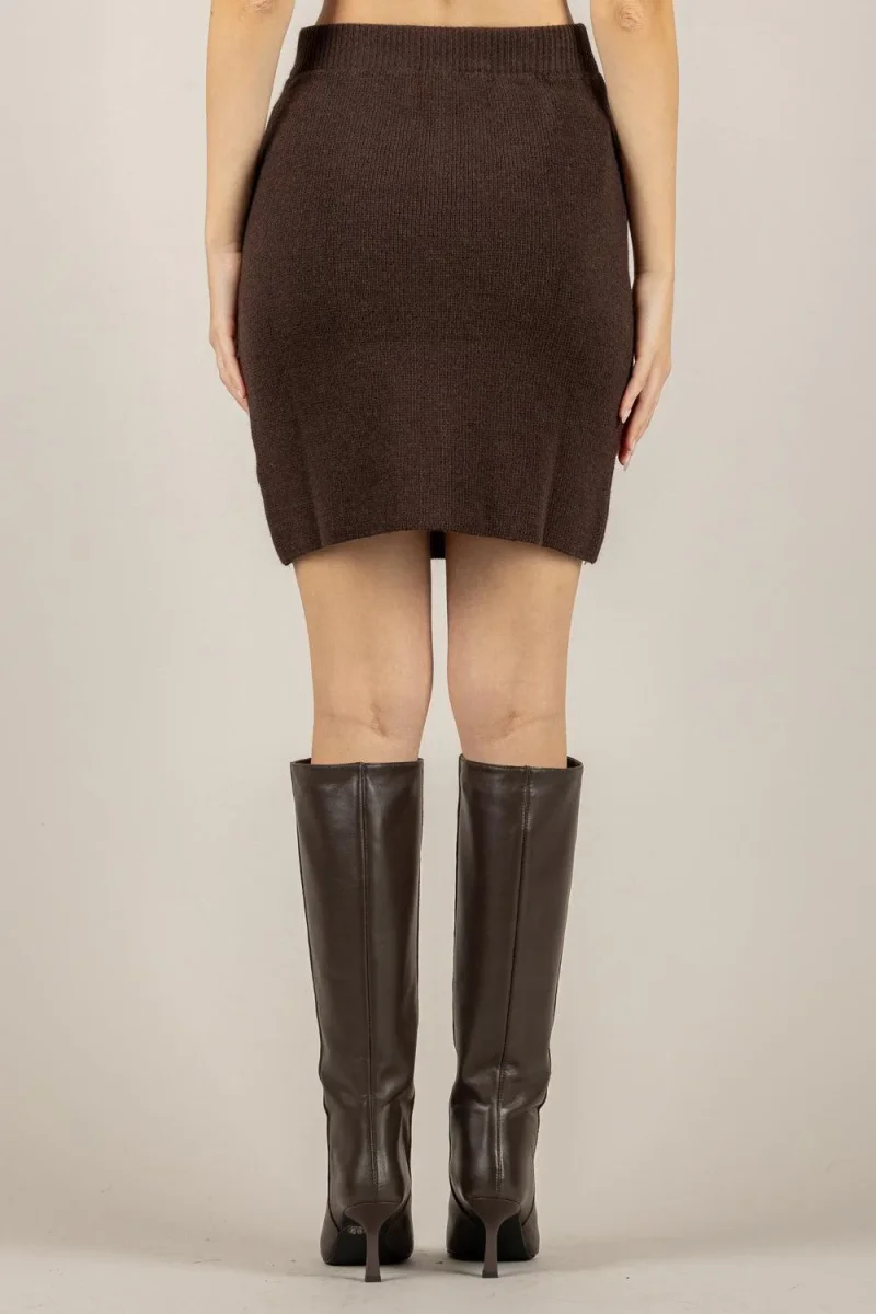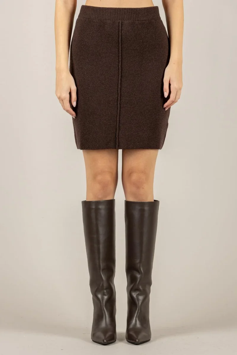 Gonna in maglia Vicolo donna, modello con lunghezza sopra il ginocchio, elasticizzata in vita, colore marrone