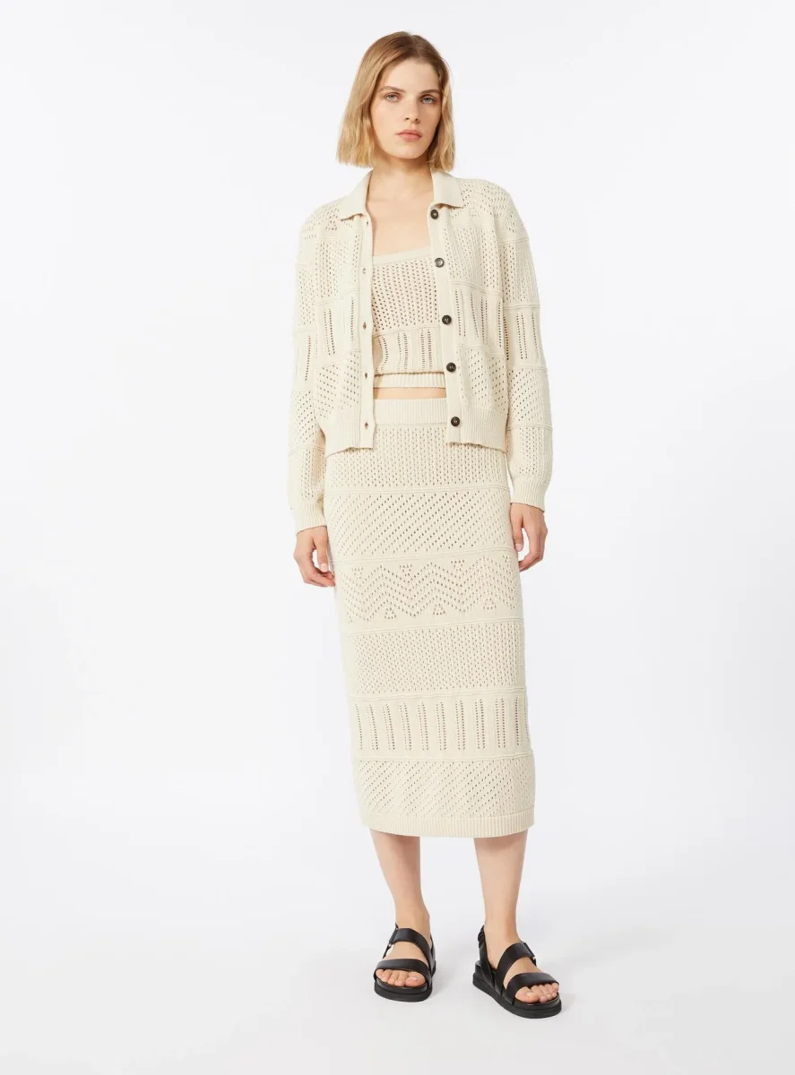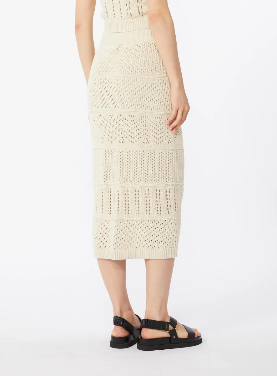 Gonna Max Mara Studio, modello in filato di misto cotone, linea aderente, vita elasticizzata, bordi rifiniti a costine, colore crema