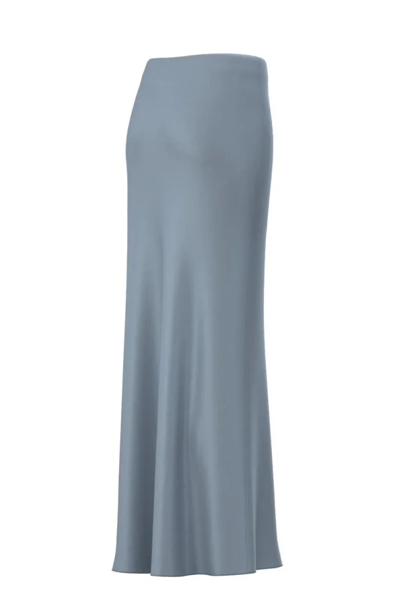 Gonna in raso tecnico, fit dritto, inserto elastico in vita, tessuto realizzato per avere un effetto leggermente svasato al fondo, colore azzurro