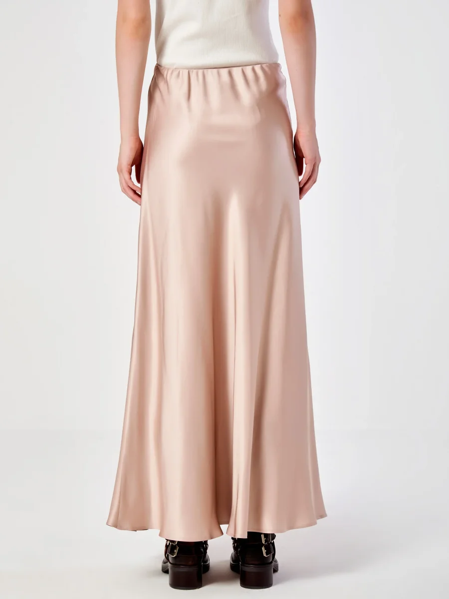 Gonna lunga Vicolo donna, modello in raso di viscosa ludico, con vita alta con elastico, colore rosa