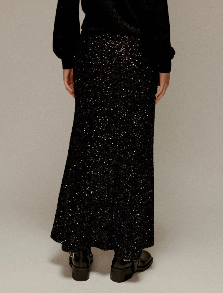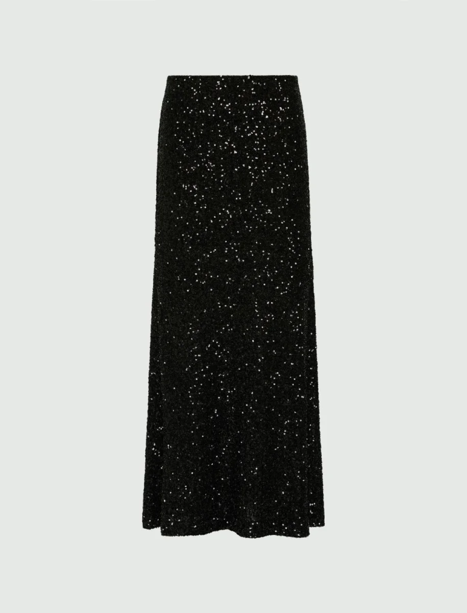 Gonna in tessuto stretch con pailettes all over, fit regolare e linea svasata, colore nero