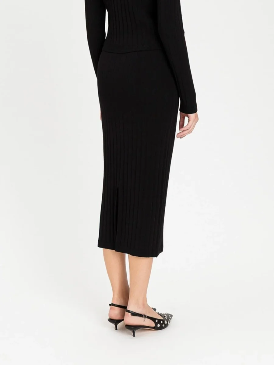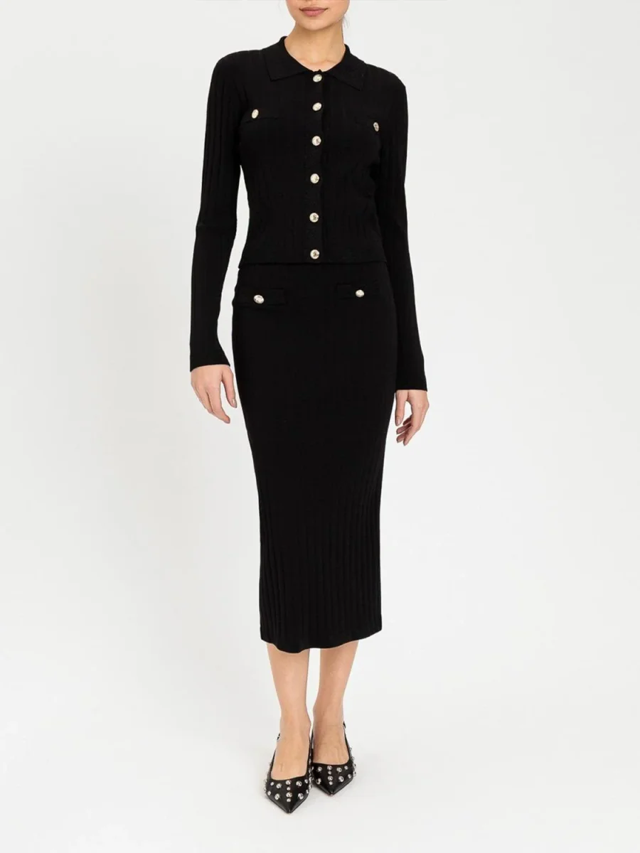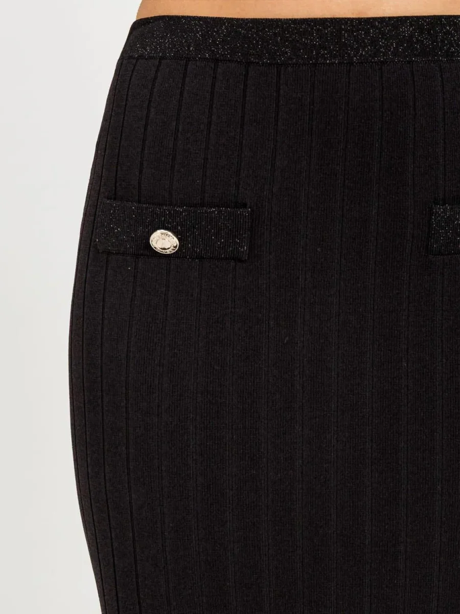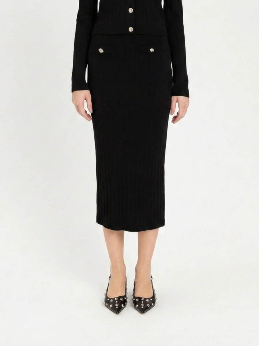 Gonna midi in maglia elasticizzata Twinset Actitude, colore nero con bottoni logati