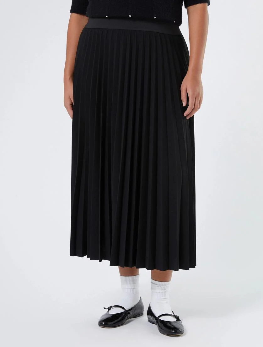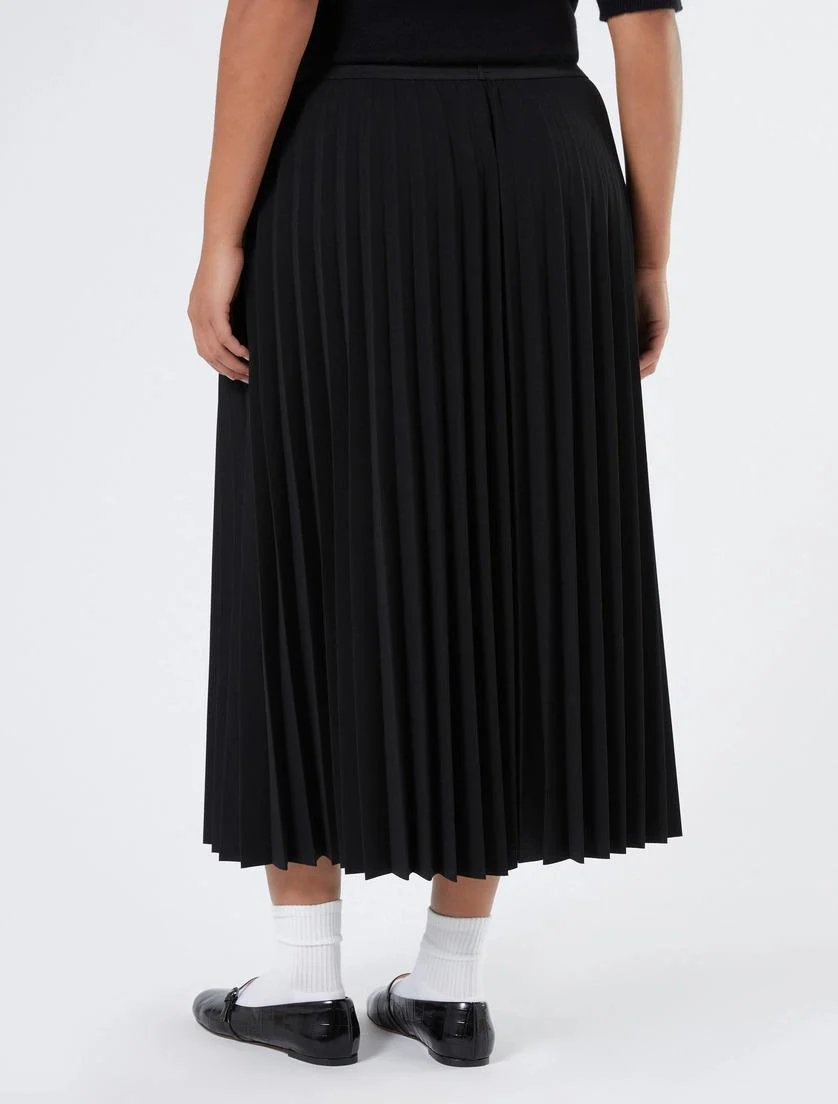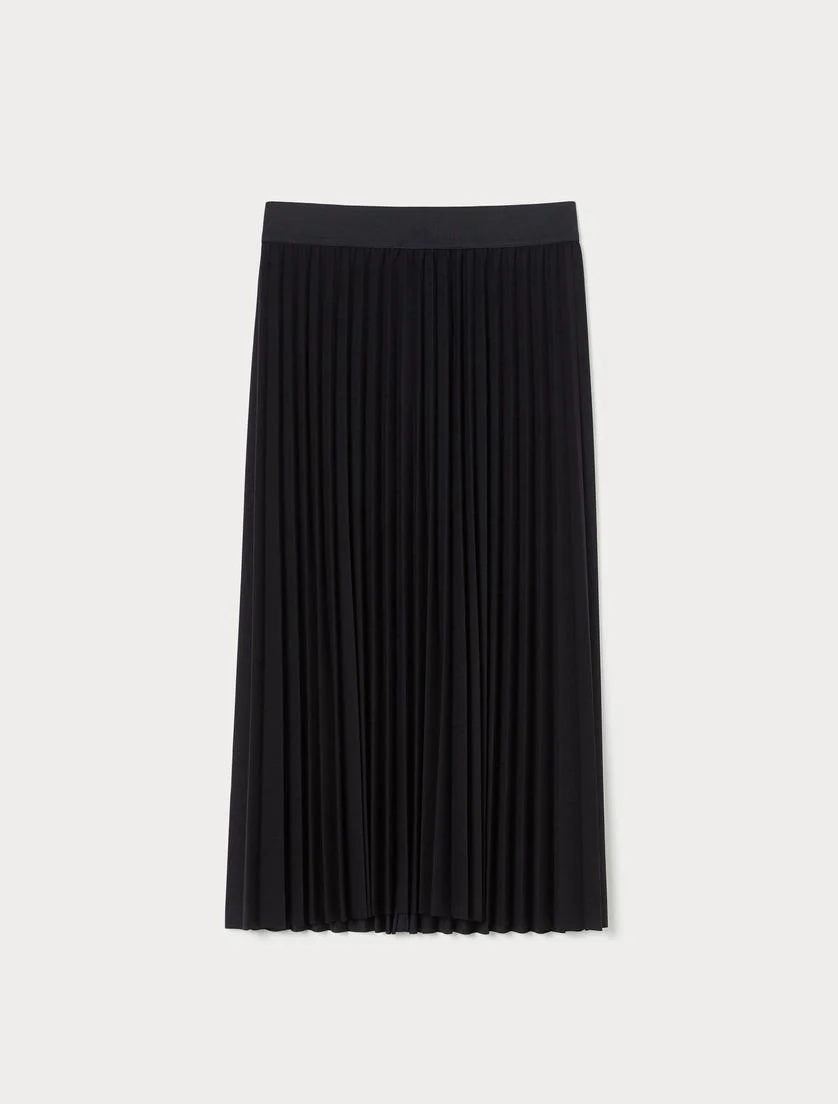 Gonna lunga in tessuto scuba stretch, linea svasata, elastico in vita e lavorazione plisse soleil, colore nero