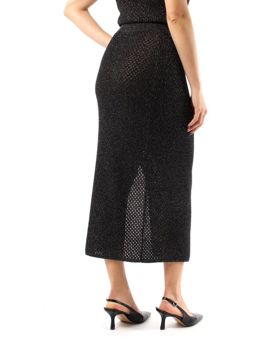 Gonna longuette in filo di misto cotone con lurex, fit regolare, cintura elastica in vita, punto traforato e spacco laterale, colore nero