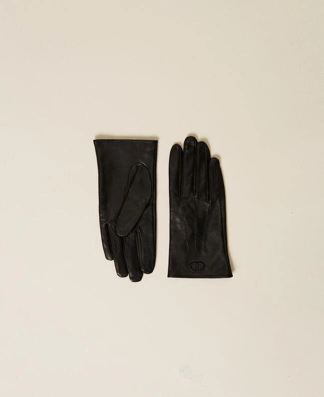 Guanti in pelle Twinset, con logo Oval T, verniciato in tono, ricamo con forma di cuore per consentire il tocco touch sui dispositivi