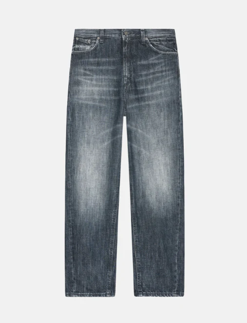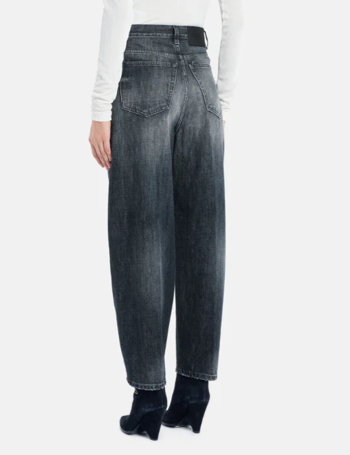 Jeans Bessie Dondup cinque tasche loose fit, vita alta, denim fisso blu grigio, lavaggio scuro