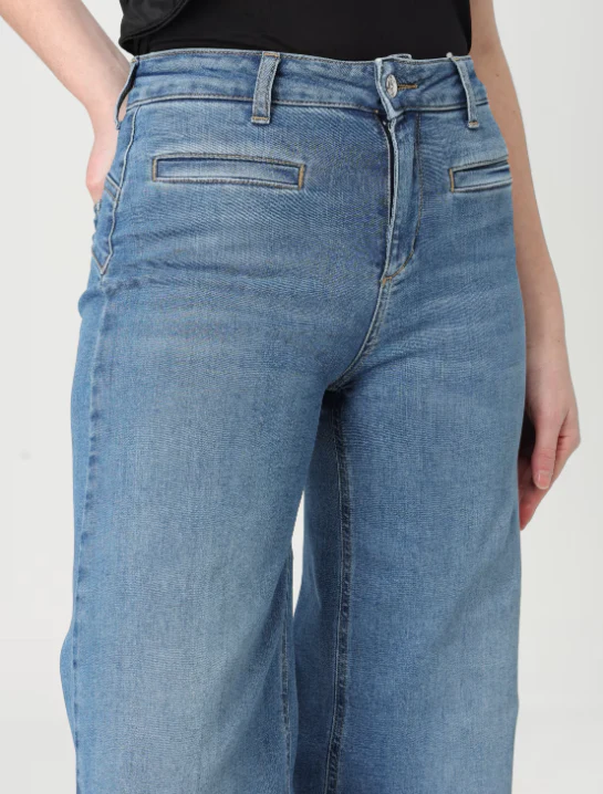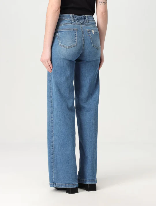 Jeans Liu Jo, con bottone e zip, tasche a fessura e toppa posteriore, vita con passanti, in denim di cotone