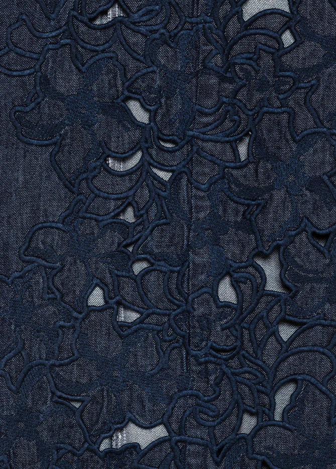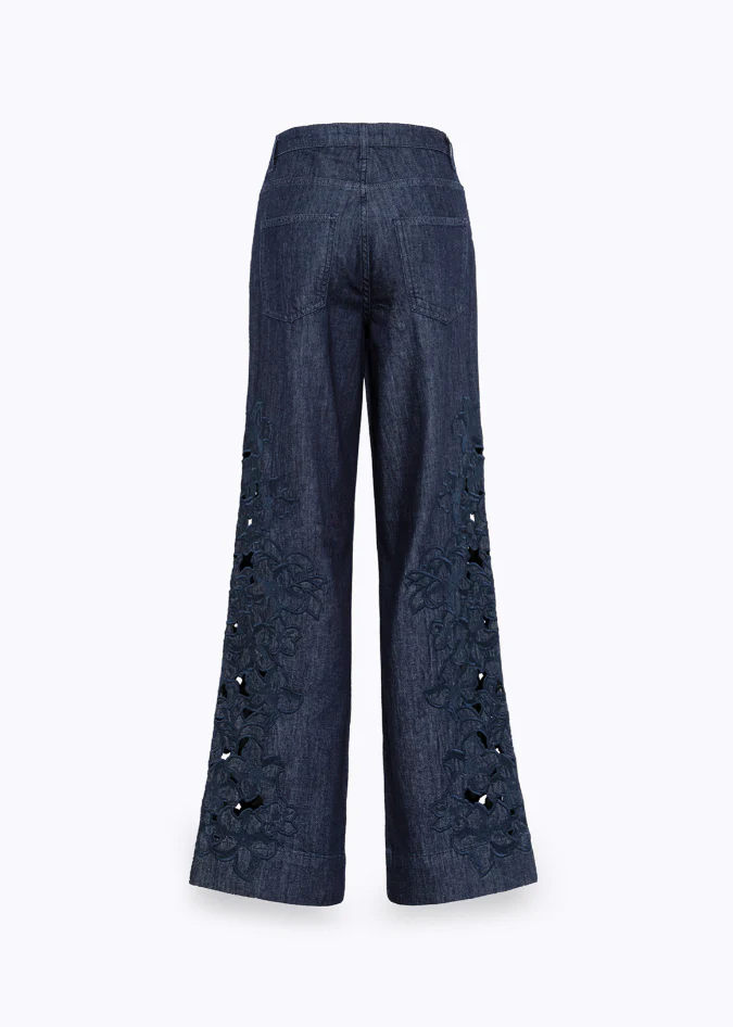 Jeans flare Blugirl modello flare con ricamo floreale in filo, passanti in vita, cinque tasche, chiusura con zip e bottone, lavaggio scuro