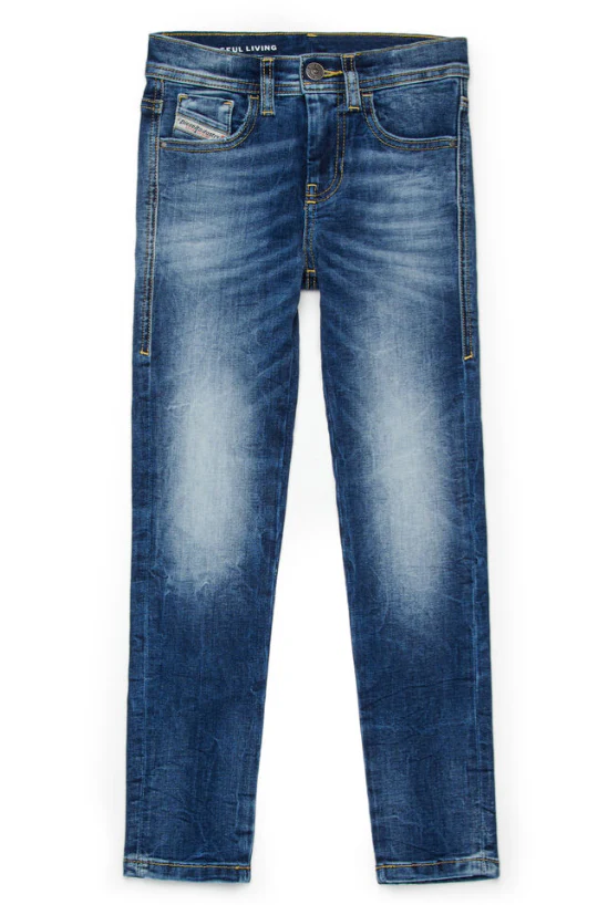 Jeans in denim con design cinque tasche e vestibilità regular, realizzati in comodo cotone, colore blu denim