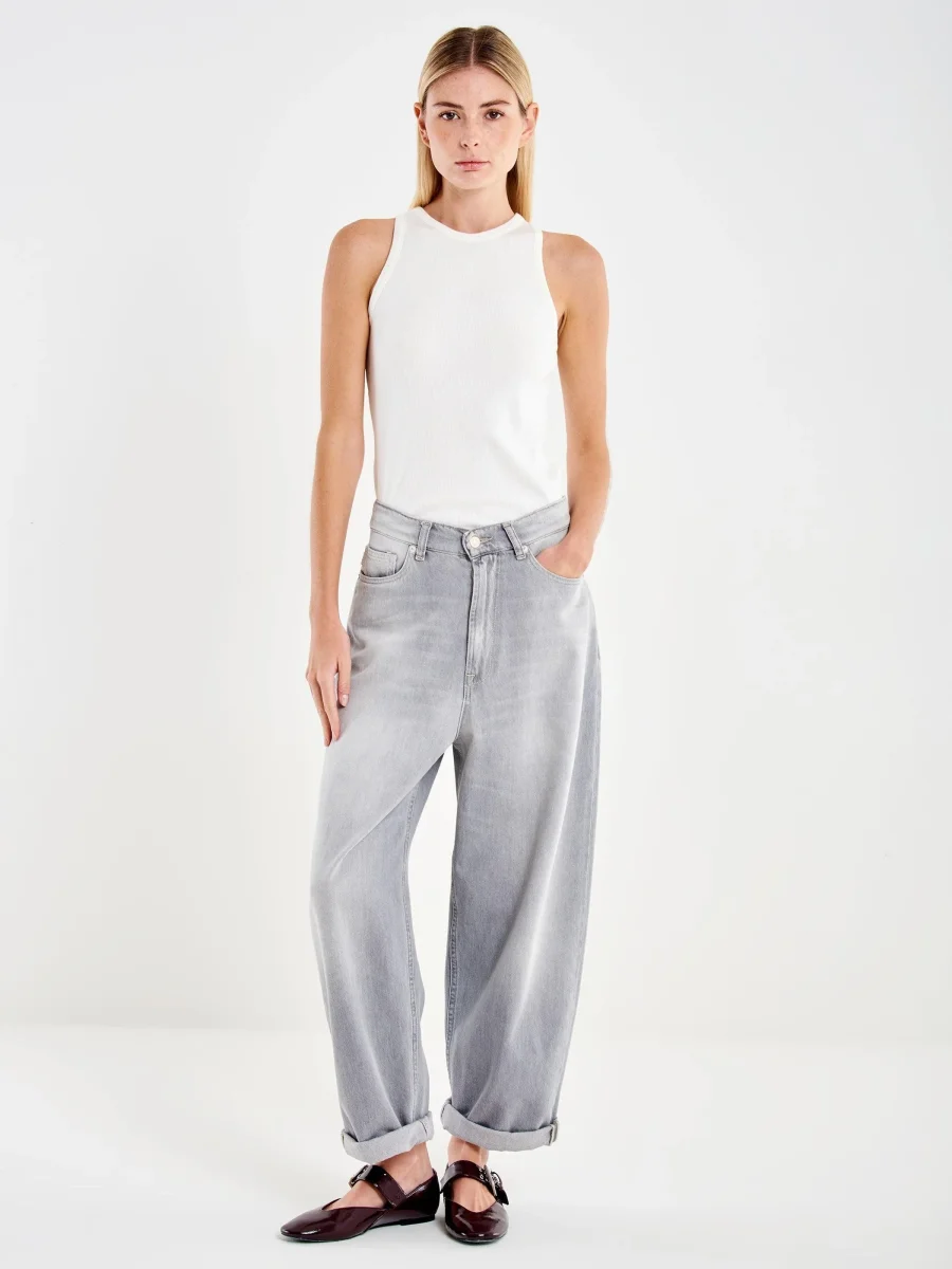 Jeans Laila relaxed fit, modello cinque tasche, chiusura con cerniera e bottone in metallo, colore denim grigio