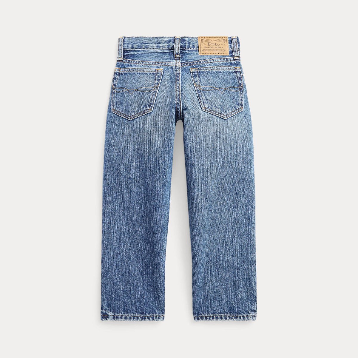 Jeans Ralph Lauren Polo, realizzati in denim di cotone con filati ringspun, chiusura bottone e passanti in vita per cintura, colore blu denim