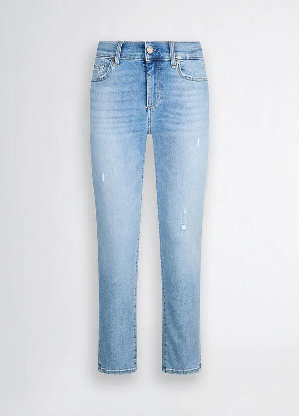 Jeans slim fit con strass Liu Jo, modello cinque tasche, strass applicati sulle tasche posteriori, colore blu denim chiaro