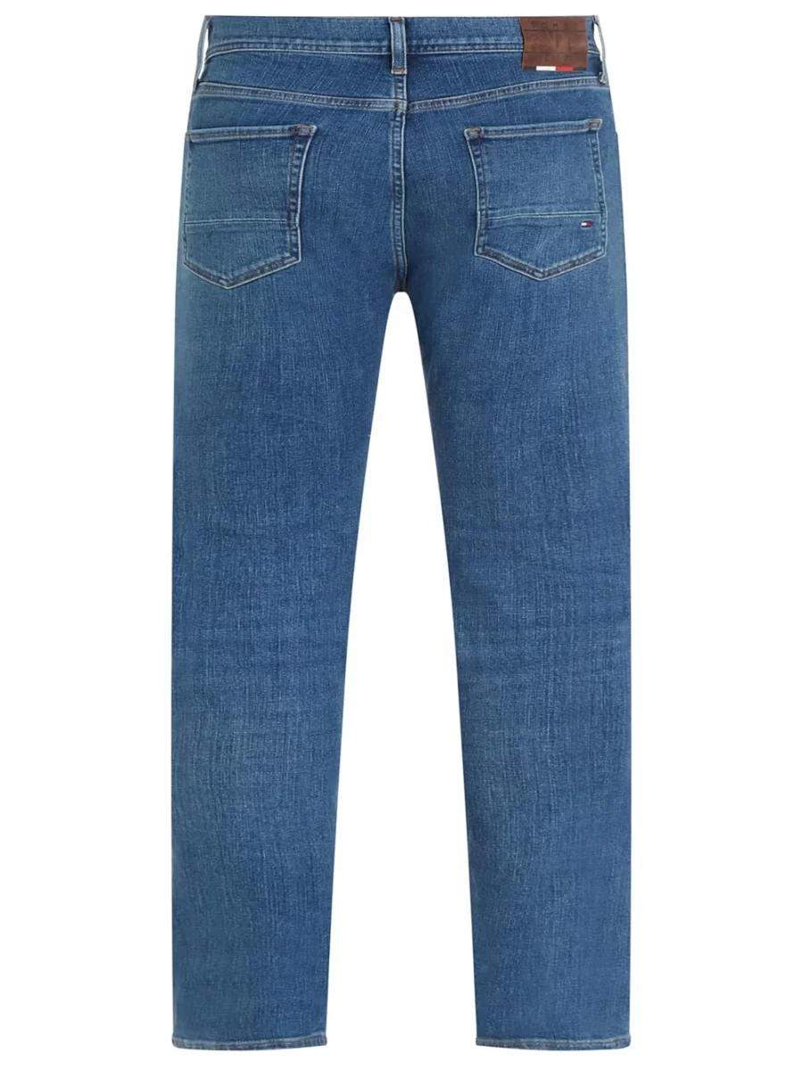 Jeans classico 5 tasche Tommy Hilfiger, modello in denim slim fit, con vita elasticizzata, logo i contrasto