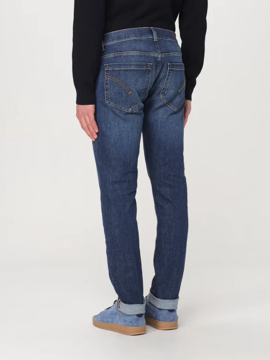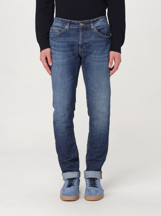 Jeans urban Dondup uomo, modello con chiusura 1 bottone, 5 tasche, passanti in vita per cintura, realizzato in denim stone wash, colore blu