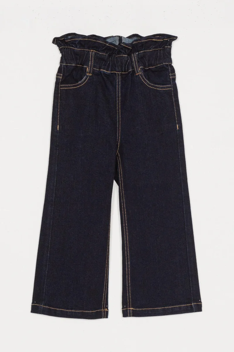 Jeans wide leg Twinset Girl, modello in denim scuro, passanti in vita per cintura, colore blu denim