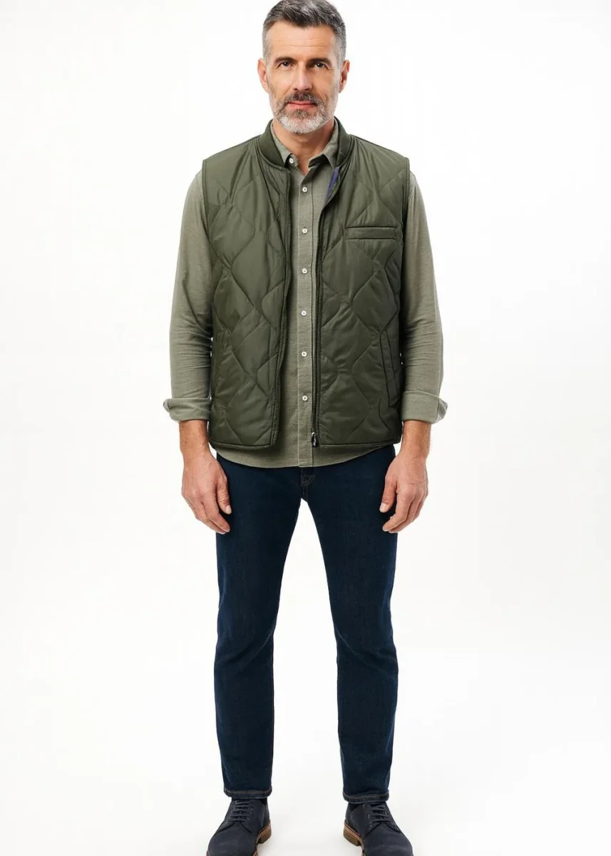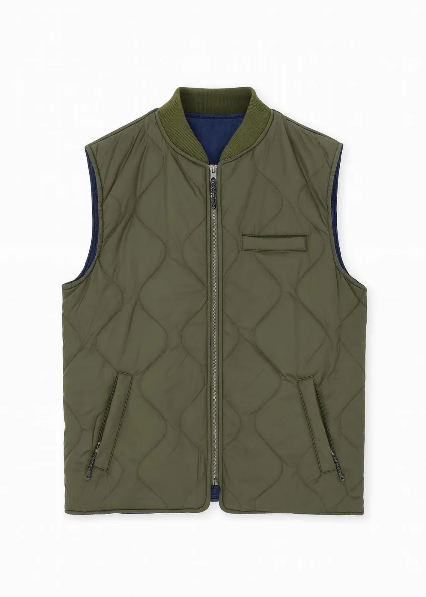 Modello: gilet in tessuto reversibile con tasche interne ed esterne