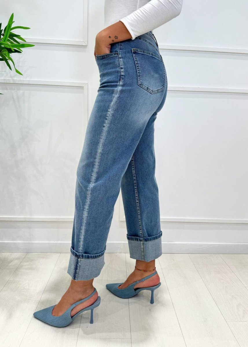 I nostri jeans da donna con risvolto sono sinonimo di comfort e stile. Realizzati in morbido denim di alta qualità , questi jeans offrono un taglio comodo e casual che si adatta a ogni forma del corpo. Con la loro vestibilità più ampia, questi jeans sono ideali per chi ama uno stile easy-chic.