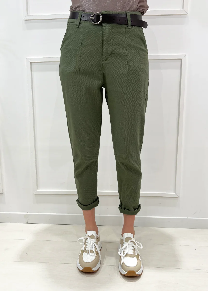 Descrizione: Pantalone vita regolare, con tasche laterali, chiusura frontale con cerniera e bottone. Passanti in vita.