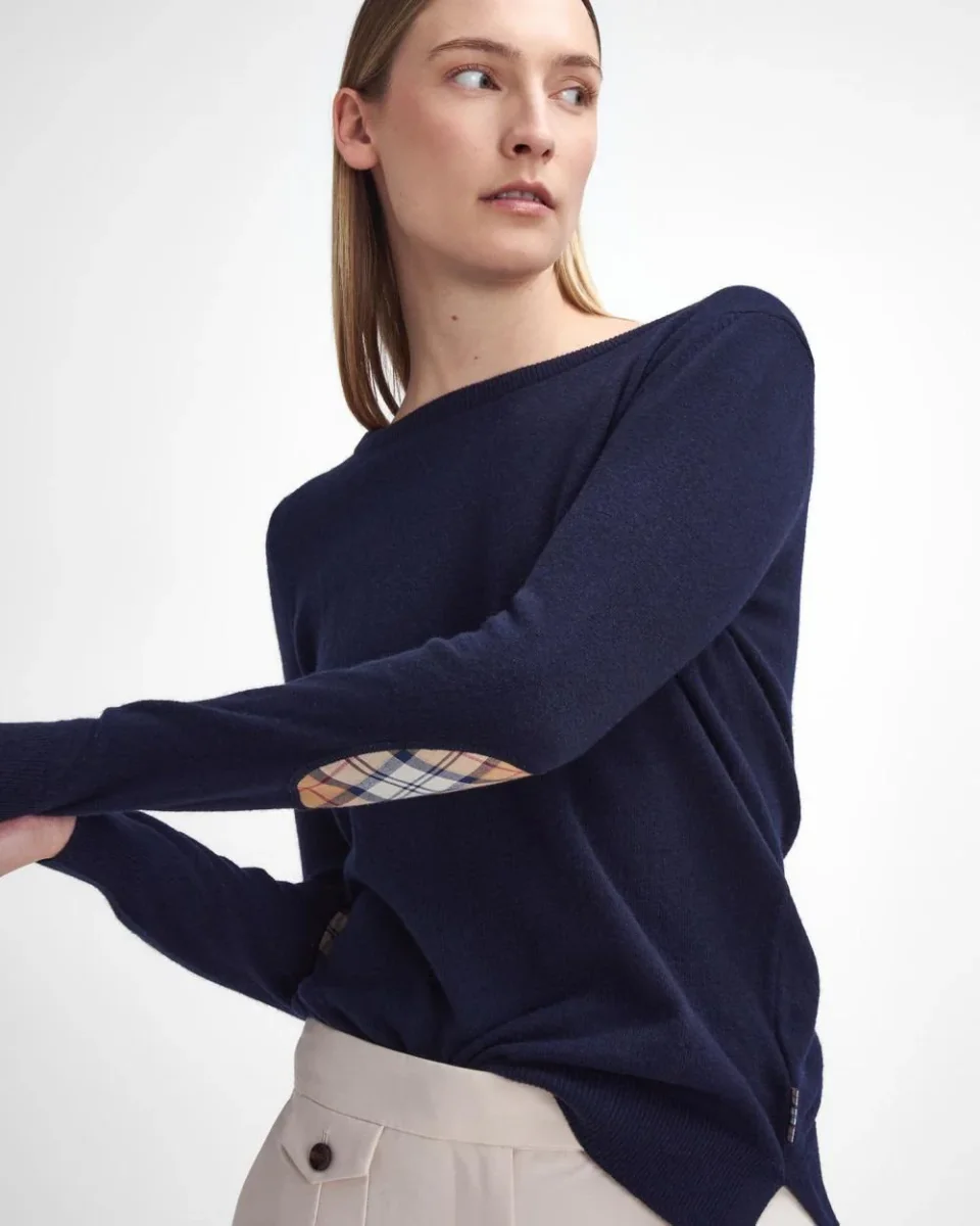 Maglia Barbour Pendle è caratterizzata da girocollo, maniche lunghe e bordi a costine. Questo capo caldo e confortevole è realizzato in un morbido mix di lana e cotone, ed è rifinito con il tartan sul retro del collo e sulle toppe dei gomiti.