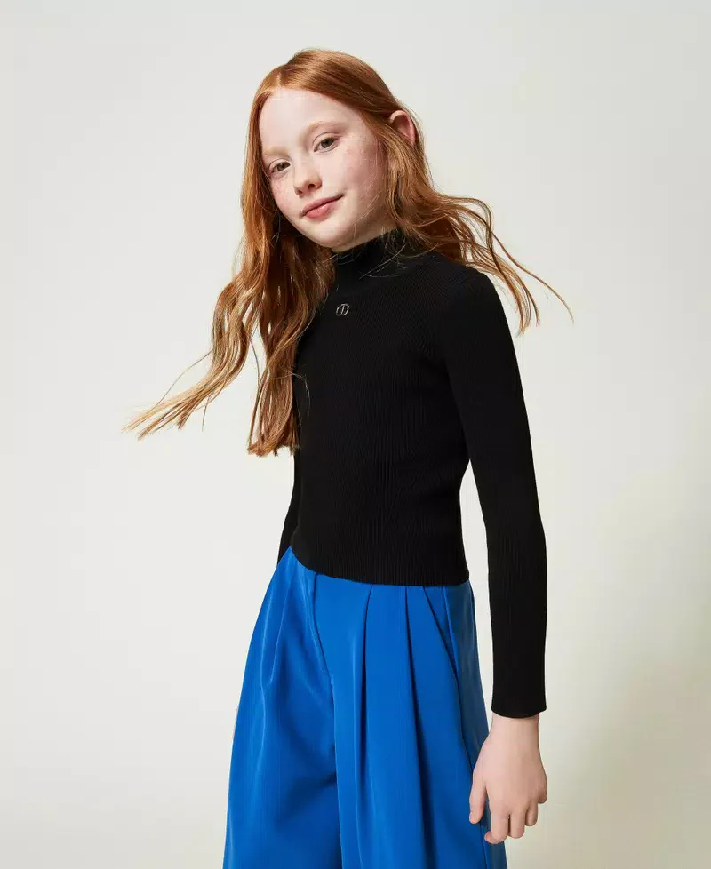 Lupetto a costine Twinset Girl, maniche lunghe dettaglio logo sul davanti, colore nero