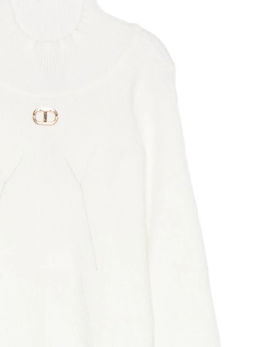Lupetto collo alto Twinset Girl, modello a maniche lunghe con dettaglio logo oro sul davanti