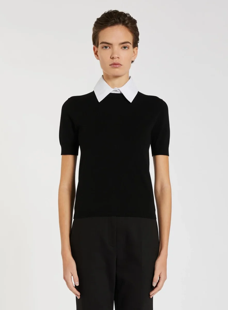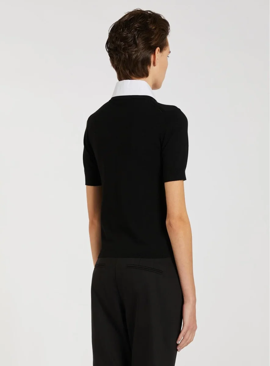 Maglia in misto viscosa, modello manica corta con collo a camicia rimovibile, maniche corte con polsino, colore nero