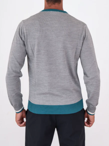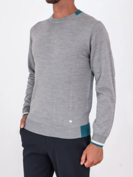 Maglia girocollo Manuel Ritz, modello con contrasti, ricamo logo e finiture a costine, realizzato in misto lana, colore grigio