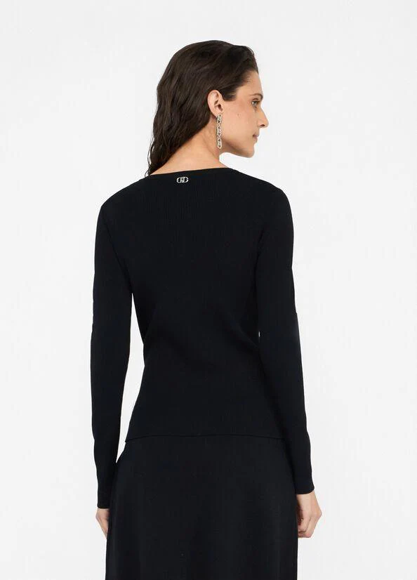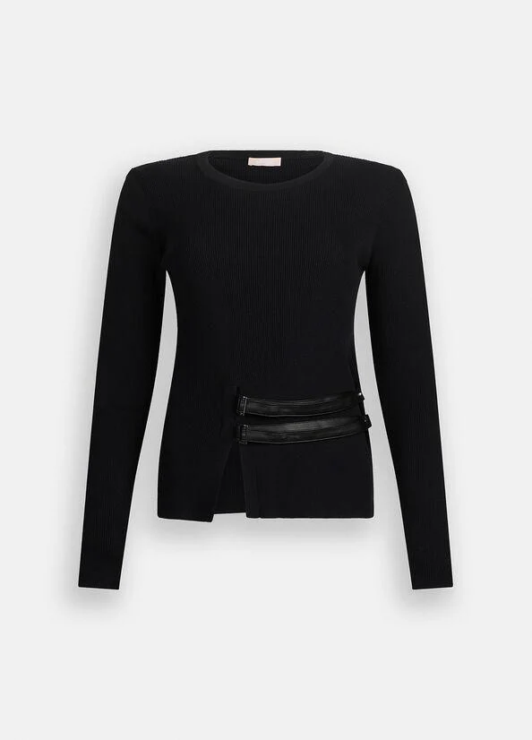 Maglia nera Liu Jo White, maniche lunghe, girocollo, spacchetto sul fondo e fibbie regolabili, colore nero