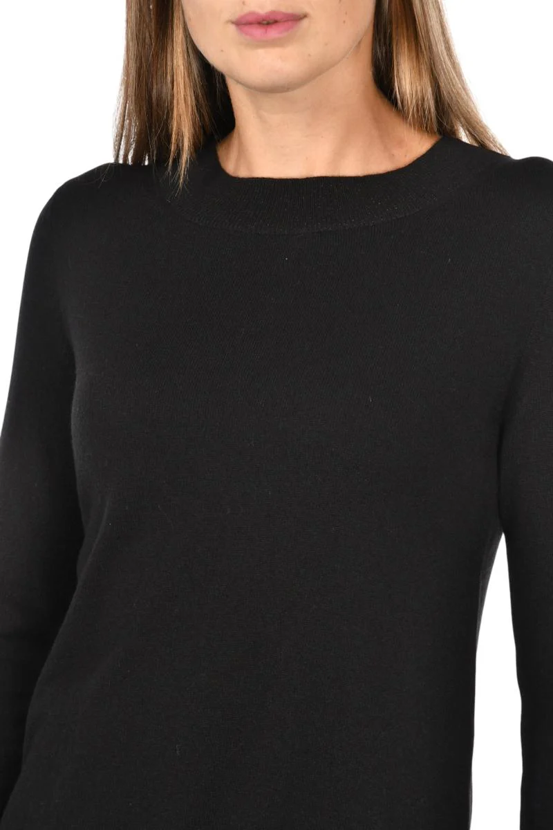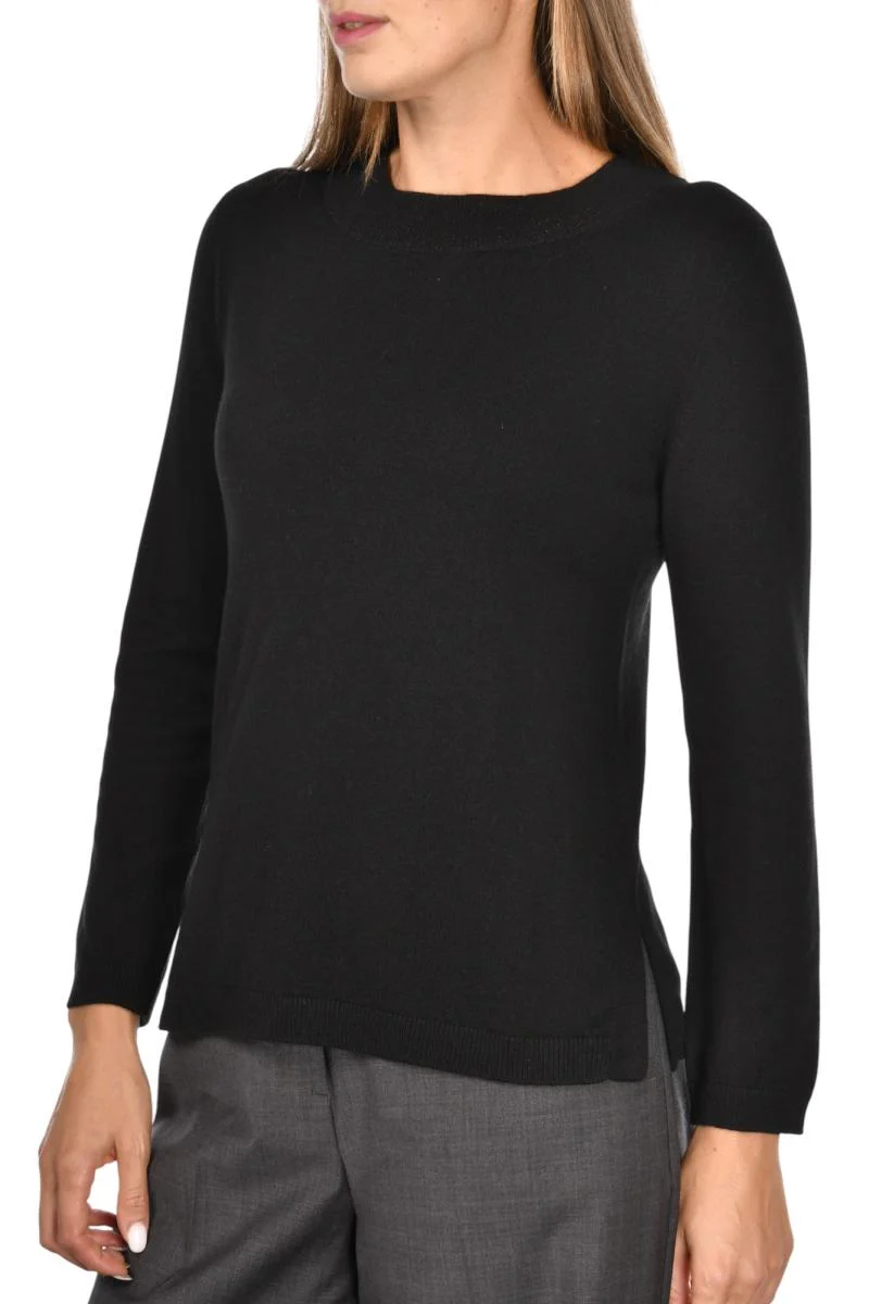 Maglia con scollo a barchetta in misto cashmere, luminoso lurex sullo scollo, spacchi laterali, regular fit, colore nero