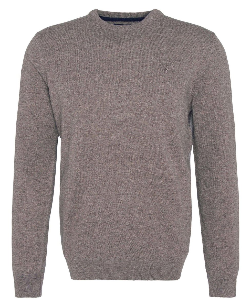 Maglia in lana Essential Barbour, modello caldo e morbido, taglio girocollo con logo ricamato in tono sul petto, colore grigio