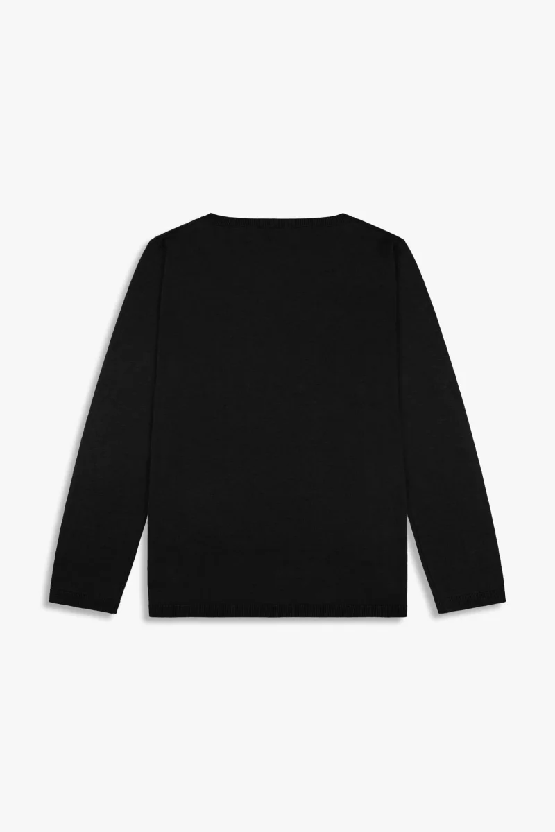 Maglia Kangra donna, collo barchetta rasato realizzato in un prezioso filato di seta e cashmere, con doppia lunghezza e spacchi al fondo. Morbido, leggero sulla finezza 16 e dal design essenziale, colore nero