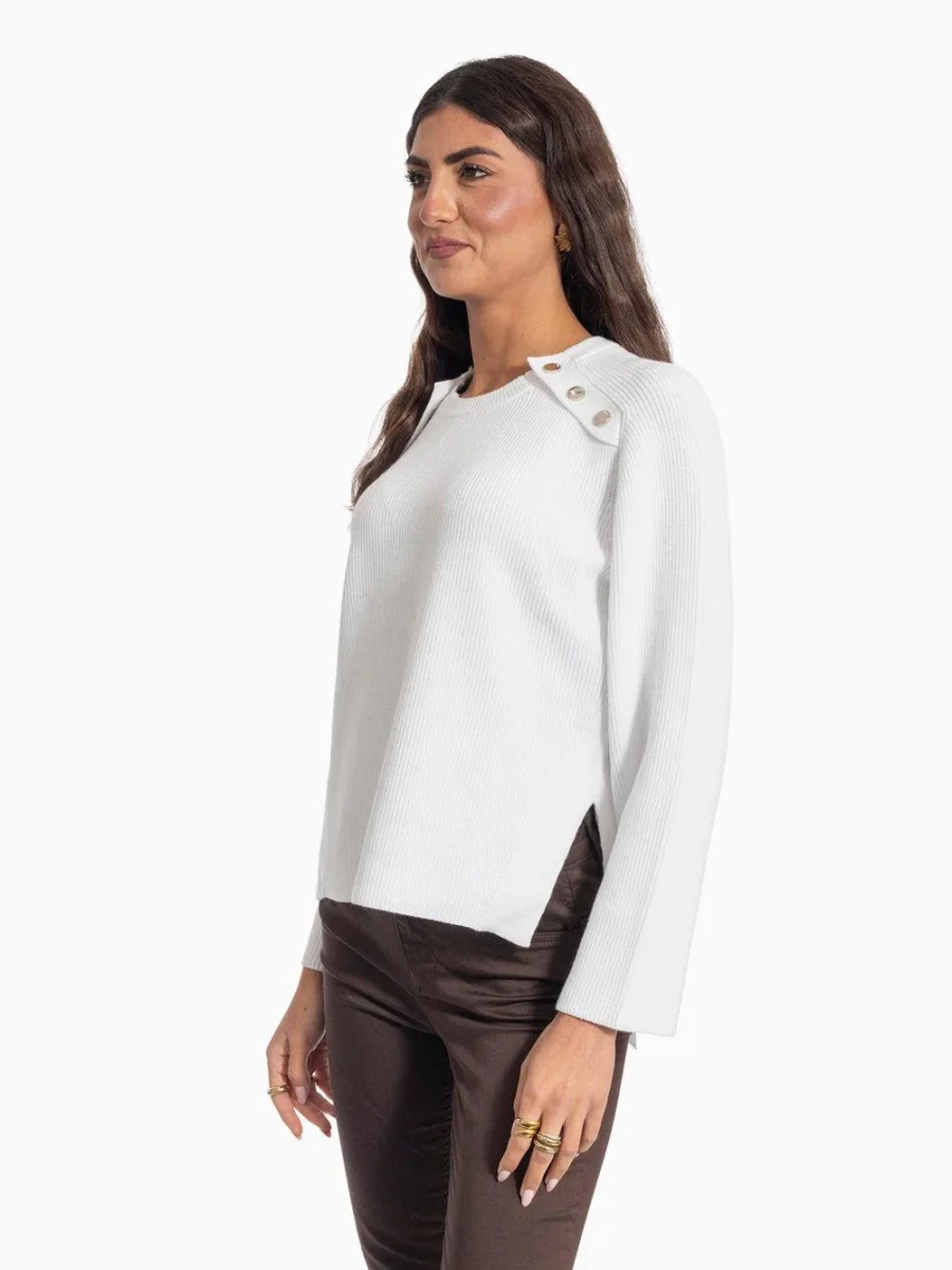 Maglioncino Liu Jo White, modello girocollo e maniche lunghe, dettaglio con bottoni applicati sul davanti, colore bianco