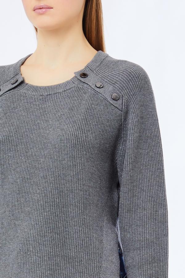 Maglioncino Liu Jo White, modello girocollo e maniche lunghe, dettaglio con bottoni applicati sul davanti, colore grigio