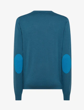 Maglioncino Sun68 uomo, modello girocollo e maniche corte, dettaglio logo in contrasto sul petto, colore avion blu