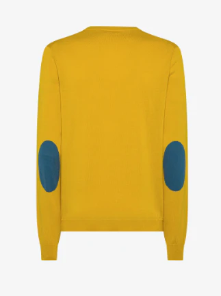 Maglioncino Sun68 uomo, modello girocollo e maniche corte, dettaglio logo in contrasto sul petto, colore giallo