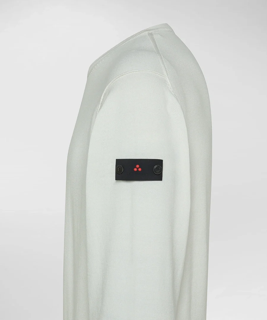 Maglioncino Ghisallo a righe, girocollo, maniche lunghe, dettaglio con contrasti righe sul fondo e patch sulla manica, vestibilità regular