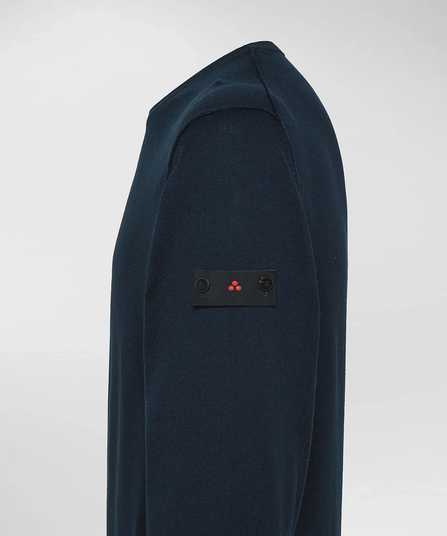 Maglioncino Ghisallo a righe, girocollo, maniche lunghe, dettaglio con contrasti righe sul fondo e patch sulla manica, vestibilità regular