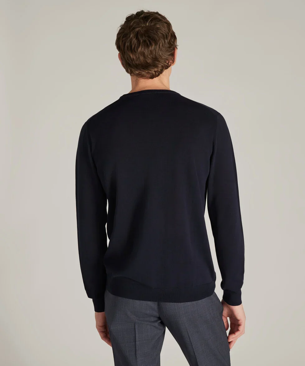 Maglioncino girocollo slim fit Zanone, maniche lunghe, effetto crèpe e morbido cotone, colore blu