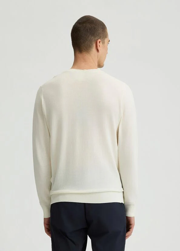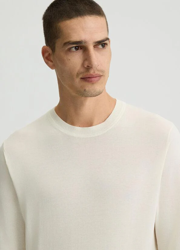 Maglioncino in crepe di cotone Liu Jo, modello girocollo e maniche lunghe, dettaglio in maglia sul fondo, bianco