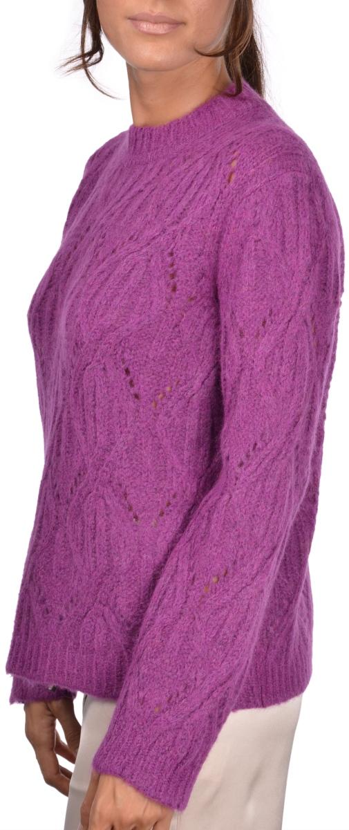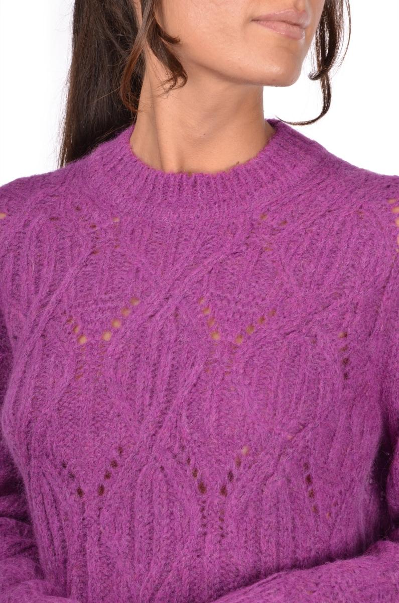 Maglione girocollo a rombi traforati Gransasso donna, realizzato in alpaca e lana 5 fili, lavorazione a rombi traforati. Colore fucsia