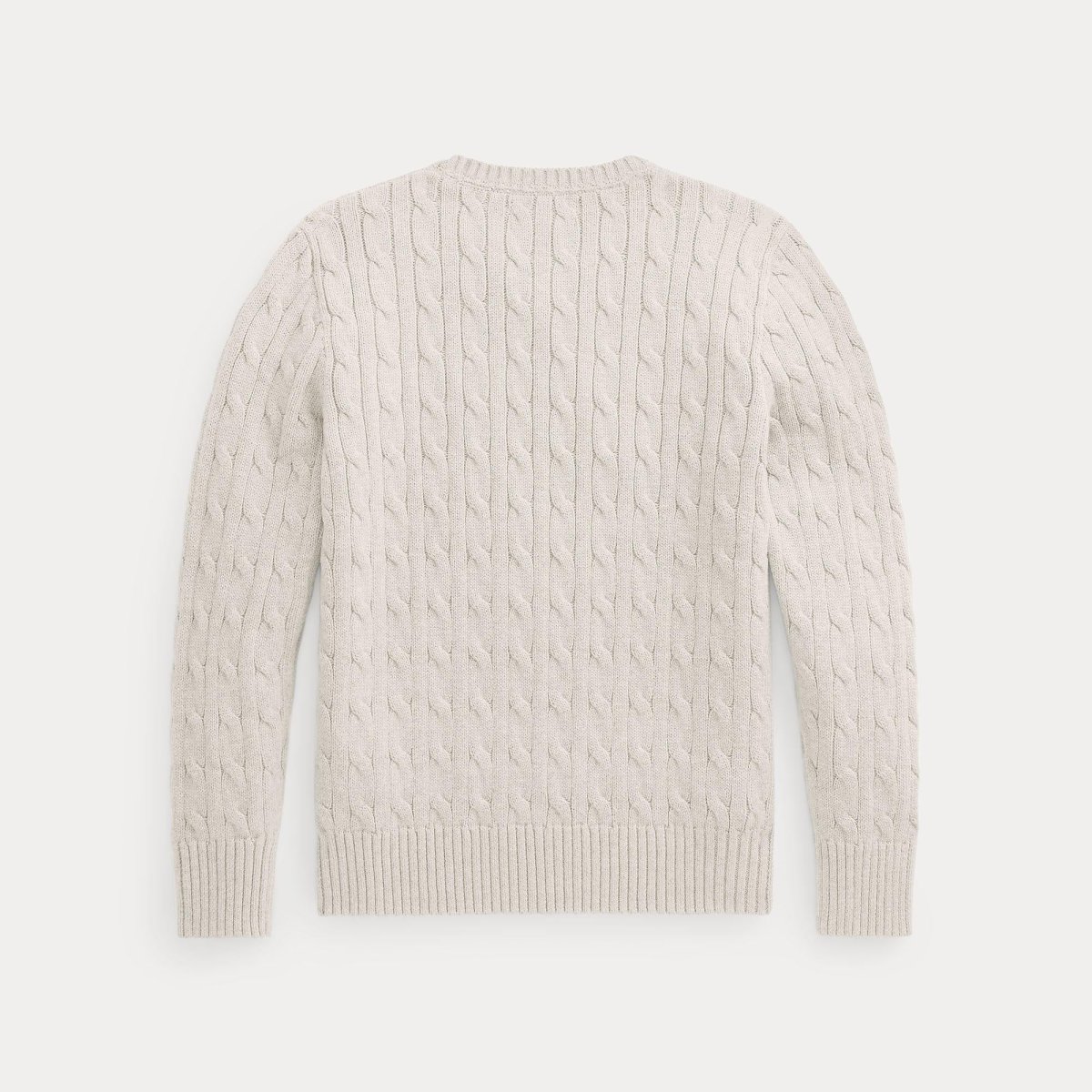 Maglione a trecce Ralph Lauren bambino, modello girocollo e maniche lunghe, realizzato in cotone, dettaglio iconico pony in contrasto, colore bianco neve