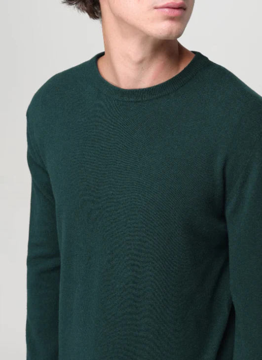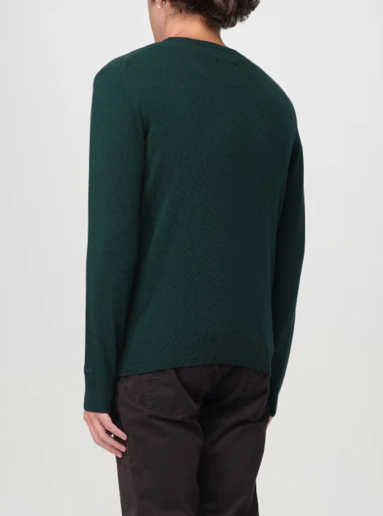Maglione girocollo uomo Woolrich, modello realizzato in lana a tinta unita, regular fit, spalle regolari, polsini a costine stretch, colore verde