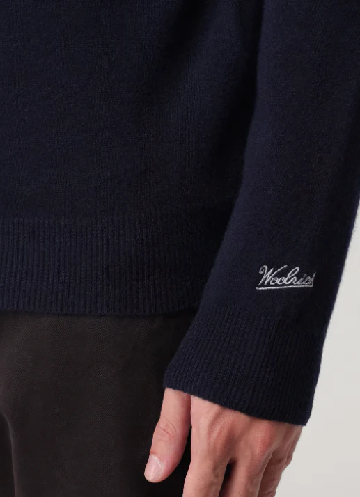 Maglione girocollo uomo Woolrich, modello realizzato in lana a tinta unita, regular fit, spalle regolari, polsini a costine stretch, colore blu