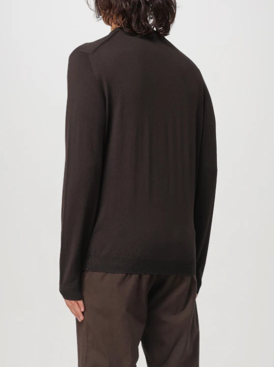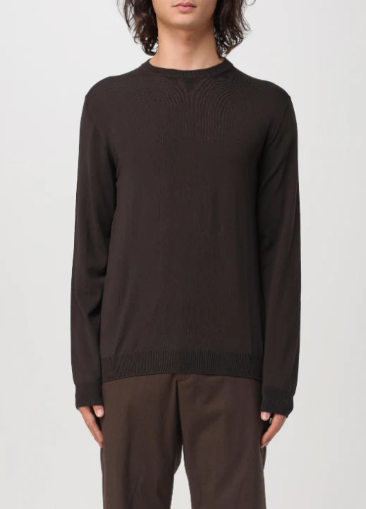 Maglioncino in lana Zanone, modello girocollo, maniche lunghe e fondo con orlo dritto, colore marrone