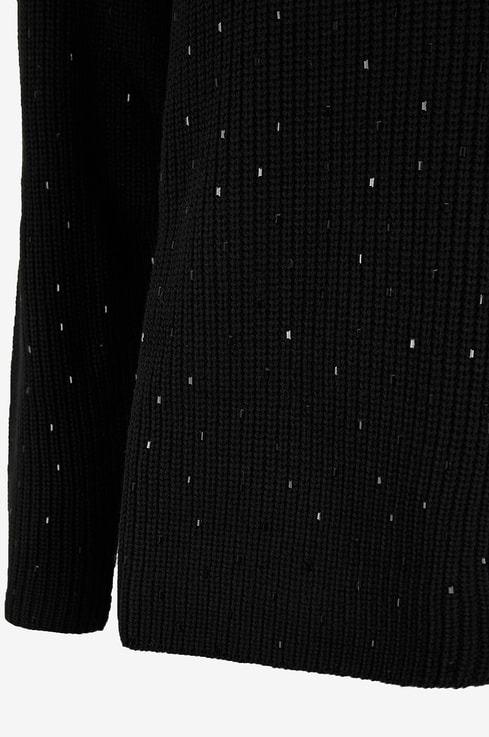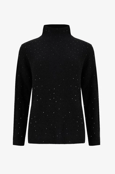 Maglion ein misto lana merino con strass termoadesivi, linea svasata, collo a lupetto e maniche lunghe, color nero